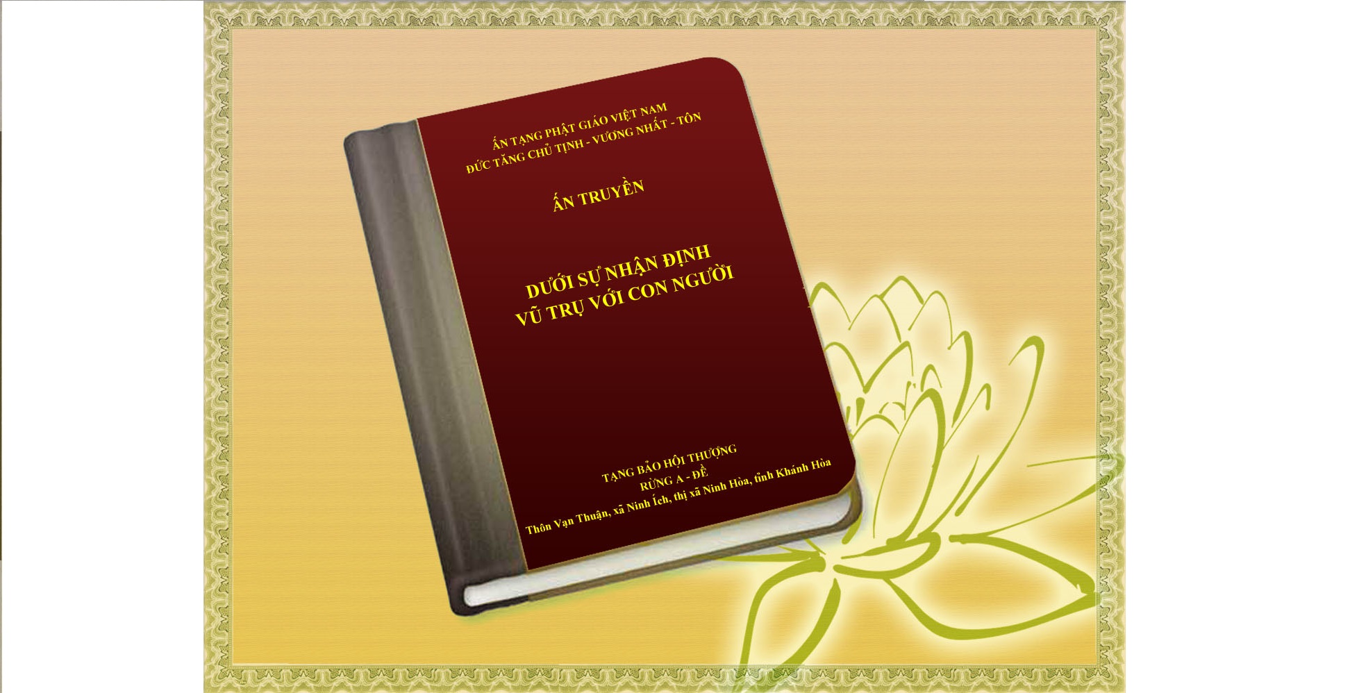 Nhân sinh quan, thế giới quan cùng vũ trụ quan của Pháp Tạng được Minh-Định trong tập Kinh này, mối quan hệ giữa con người với vũ trụ và ngược lại vũ trụ tác động đến con người. Trân trọng kính mời Chư vị, Chân Phật Tử Pháp Tạng liên hệ thỉnh tập Kinh “DƯỚI SỰ […]
