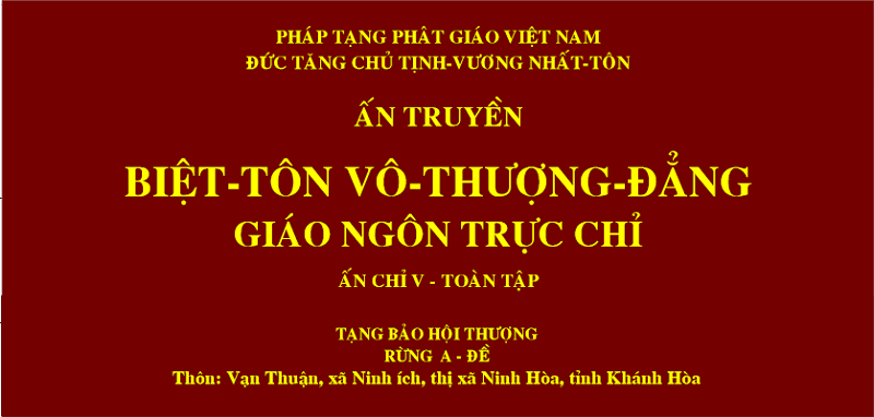 Bộ GIÁO NGÔN TRỰC CHỈ – ẤN CHỈ V (có 04 tập, gồm 40 bài), còn gọi là bộ Kinh “BIỆT TÔN VÔ THƯỢNG ĐẲNG”. Đây là bộ Kinh cuối cùng Ngài hoàn thiện vào khoảng 1990. Những gì còn sót lại trong hành trang Cuộc Hành trình Hiện thể, lộ trình Phật Vương, Ngài […]